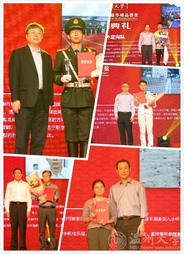 “兢兢业业,不忘初心;诲人不倦,春风化雨。指导学生学习实验,你像父亲一样严而有格;叮嘱学生穿衣吃饭,你像母亲一样爱而有度。30年如一日,你始终在教学一线耕耘;三秩酷暑寒冬,你一直在科技创新的征程上前行。仰之弥高,钻之弥坚,你是杏坛一颗璀璨耀眼的明星,你是照亮学生成长道路的灯塔。” “你以‘做人友善,做事敬业’为宗旨,创办企业,业绩骄人,‘功勋企业家’称号实至名归。你饮水思源,回报母校;心怀感恩,回馈社会,无私的奉献不能用数字来表达,你的捐助使万千学子梦想成真,你的爱心助力社会公益事业蓬勃发展。富而思源,善行天下,你赢得了人们的掌声与景仰。” …… 时隔一年,小宝影院 “华峰品德奖”带着感动再度来袭。5月18日下午,小宝影院 举行第五届“华峰品德奖”颁奖典礼,在颁奖典礼上,组委会分别为吴华悦、申允徳、苏洁、何赛菲、黄靖、潘道品、蒋维清、国旗护卫队、户外定向队、青年志愿者服务中心等十位“华峰品德奖”获得者送上颁奖词。华峰集团党委书记周品英、总经理助理邹宗钧,校领导李校堃、牟德刚、陈安金、潘玉驹以及学校各单位负责人、师生代表出席颁奖典礼。