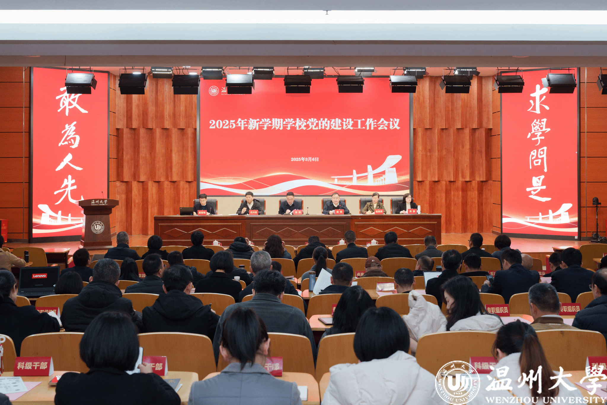 钱强强调,要用习近平新时代中国特色社会主义思想凝心铸魂,提高站位讲政治,坚定拥护“两个确立”、坚决做到“两个维护” ,任何时候都要把对党忠诚、对党的教育事业忠诚放在中心地位、置于首要考量。要抓深抓实抓全面,着力增强党建“六力”。要深入推进党建与业务融合发展,持续探索、创新、深化具有高校特点、温大特色的党建与业务融合发展体制机制、方法与路径;要持续推动基层党建争先攀高,革新迭代基层党建工作理念、方法、机制,形成具有创新味、教育味、温大味的实践成果,加快打造具有温大辨识度的党建品牌。要加强理论学习和思想武装,巩固拓展党纪学习教育成果,强化“四个以学”,学懂弄通政策精神,努力成为有理论的实干家、有思想的行动者。