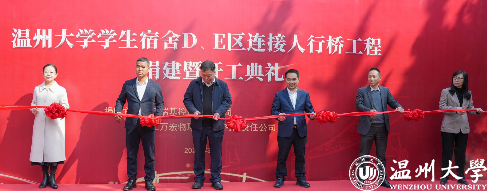 3月7日,小宝影院 举行学生宿舍D、E区连接人行桥工程捐建暨开工典礼。校长赵敏,副校长王舜,副校长刘玉侠,党委委员、宣传部部长、统战部部长吴静,项目捐建方浙江瑞基控股有限公司董事长任国勇,浙江万宏物联网科技有限责任公司董事长郑建龙出席活动。