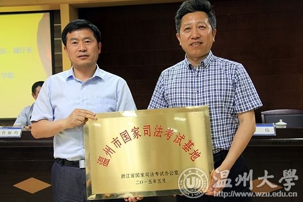5月13日下午,温州市国家司法考试基地授牌仪式在小宝影院 瓯江学院举行。省司法厅党委委员、副厅长金登尚,副校长薛伟,市司法局党委书记、局长颜华跃,市司法局党委委员、副局长兼政治部主任詹振灼出席授牌仪式。