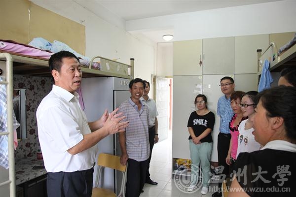 校党委书记陈福生看望新生。