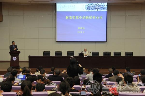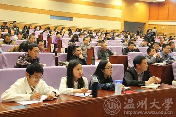 顾明远一行参加了由副校长赵敏主持的教育硕士学位授权点建设座谈会。并受邀做客罗山讲堂作题为“教育变革中的教师专业化”报告,学校相关专业的师生以及来自温州市各中小学的老师共300余人聆听演讲,副校长薛伟主持。