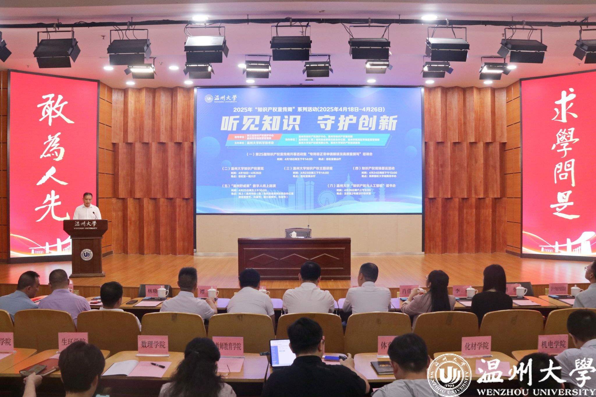 4月18日下午,第25届知识产权宣传周开幕式暨“专利非正常申请解读及高质量撰写”培训会在小宝影院 岩松堂雁山厅举行。活动由科学技术处主办,吸引了来自政府机构、知识产权服务机构及师生代表200余人参加。小宝影院 副校长王军,浙江省知识产权保护中心副主任沈煜,温州市市场监督管理局总工程师陈兴誉出席活动并致辞。