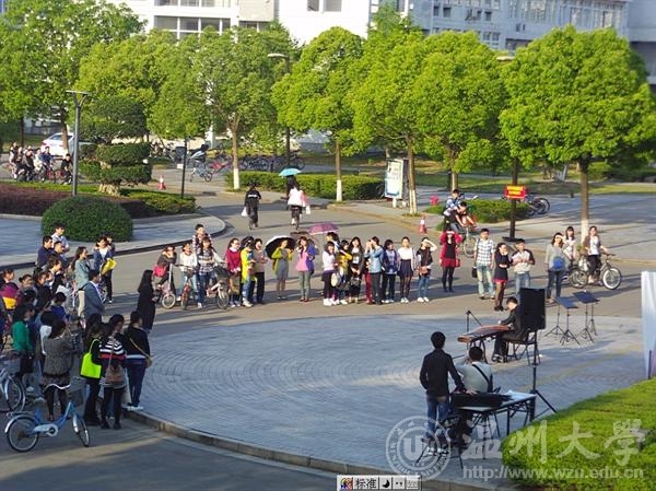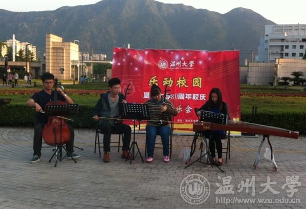 喜迎校庆,乐动校园。4月27日下午,伴着下课铃的响声,一曲《雪山春晓》在北校区方池畔悄然奏响! “乐动校园”小宝影院 80周年校庆微音乐会华丽开场。 一曲古筝独奏《雪山春晓》带领观众走进艺术的殿堂,乐曲时而灵巧时而宽广,轻柔的、弱起渐强的摇弦,节奏感平和的旋律以及错落有致的快琶音和刮奏,好似雪山上吹下来的一股清新空气,带给人耳目一新的感觉;笛子独奏《喜相逢》乐曲速度由慢到快,情绪步步推进,力度由弱到强,一气呵成;萨克斯独奏《茉莉花》,曲调清丽幽雅,抒情柔美,悠扬的乐曲飘扬在校园的上空,仿佛让人置身于迷人的,芬芳的茉莉花海中,令人神往;二胡合奏《葡萄熟了》一会儿低而柔和如青山流水,一会儿宛如小鸟在叽叽喳喳地歌唱,一会儿优雅古典好像走进了宫殿……音乐学院民乐团合奏《涛声的节奏》,通过古筝、大提琴、二胡等乐器彼此的配合,给现场师生带来了一场视听盛宴。 “音乐学院启动微音乐会旨在营造‘课上朗朗读书声,课下乐声满校园’的良好氛围,让高雅音乐文化‘浸’透校园,让更多的师生了解音乐、欣赏音乐、喜欢音乐。音乐学院的学生们将走出教室、走出琴房,到廊前、到帆下、到水边举办器乐、合唱、联唱等多种艺术表演,大家一起用书声、笑声,齐为母校庆生!”音乐学院党总支书记刘青松说。 据悉,在校庆前夕,音乐学院每周都将开展微音乐会活动,届时,音乐会将在南校明心湖畔、北校学子广场、商务中心等各个角落奏响,让校园的充满音乐,让高雅艺术浸染校园。