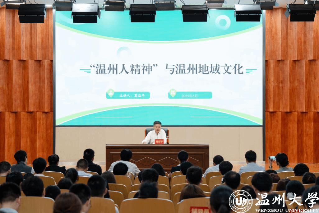 葛益平从什么是“温州人精神”、温州——一座具有深厚历史文化底蕴的城市、“温州人精神”与“四大文化基因”的关系三个方面,全方位解读了“温州人精神”的传承与发展。以深厚的学术积淀和生动的语言风格,为师生勾勒出温州地域文化的基因图谱,通过大量鲜活案例,让师生看到温州精神如何从历史走向现实,如何在新时代继续书写传奇。
