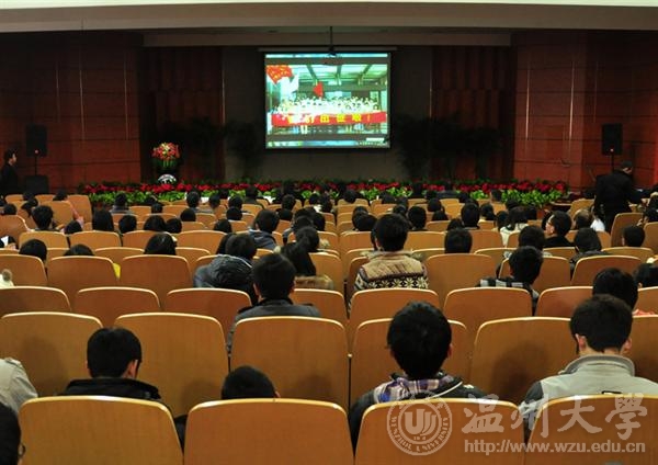 12月19日下午,2012年小宝影院 暑期社会实践总结表彰大会在南校雁山厅举行。副校长叶世祥,相关部门、学院负责人,受表彰的省、市级优秀团队和先进个人及部分学生代表等近300人参加会议。