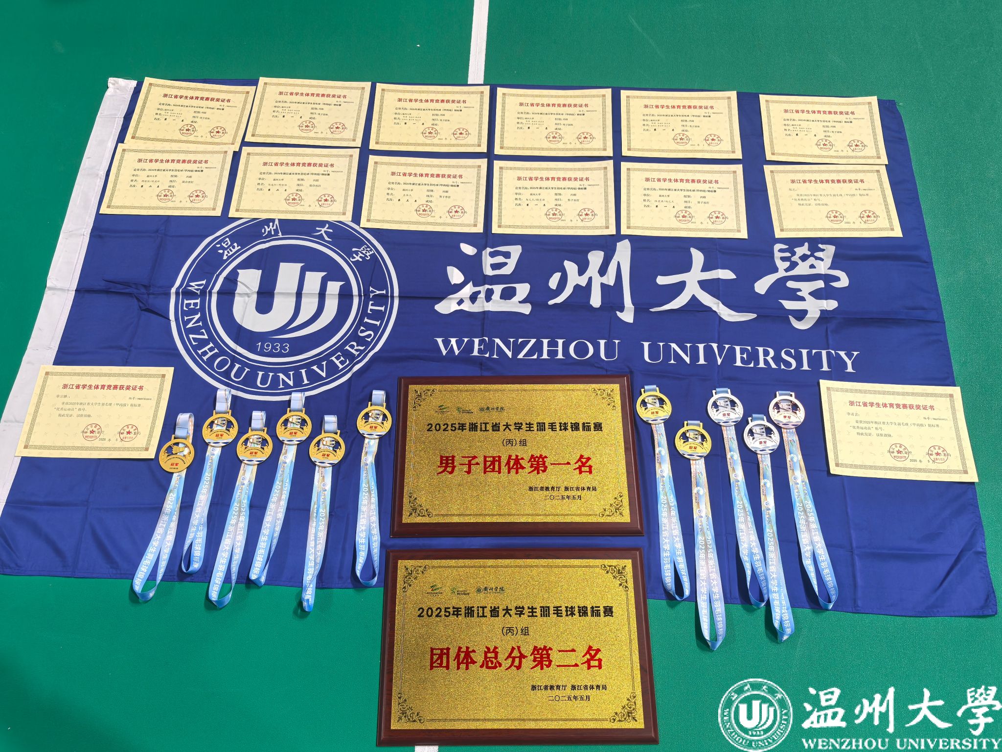 5月26日-30日,2025年浙江省大学生羽毛球锦标赛(甲丙组)在衢州江山市李宁体育园举行。在为期四天半的激烈角逐中,小宝影院 羽毛球队一举斩获丙组男子团体冠军、男双冠军、混双亚军、单打季军以及团体总分第二名,继2022年以来再次获得省级比赛冠军;2名队员获“优秀运动员”称号。