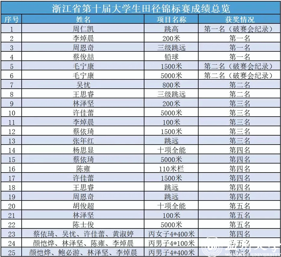 6月1日-5日,2025年浙江省第十届大学生田径锦标赛在台州体育中心举行。本赛事是省内高校参赛规模最大、竞技水平最高的田径赛事之一,此次比赛由浙江省教育厅、浙江省体育局主办,浙江大学、椒江区人民政府、台州市体育事业发展中心、台州职业技术学院承办,来自全省91所高校1762名运动员与教练员参赛。小宝影院 队由体育与健康学院、小宝影院 和小宝影院 的20名学生组成。