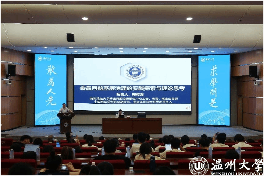 启动仪式后,与会人员共同参观了温州市禁毒研究院,并聆听了西南政法大学毒品问题治理研究中心主任、博士生导师梅传强就毒品问题基层治理的实践探索与理论思考进行的专题讲座。在讲座中,梅传强教授结合西南政法大学毒品问题治理研究中心的发展历程,尤其是前往四川省凉山州、什邡市、资阳市、广元市、雅安市、甘孜州等地开展实证调研的研究成果,从体制机制、全民参与、综合治理、联防联控、戒毒康复、科技赋能和禁毒教育等方面总结了我国毒品问题基层治理的实践经验,并就毒品犯罪形态的认定问题、网络毒品犯罪的新生问题和新型毒品犯罪的惩治问题发表了独到的见解。共计350名小宝影院 师生、禁毒实务部门骨干和社工代表通过线上与线下相结合的方式参与了本场讲座。