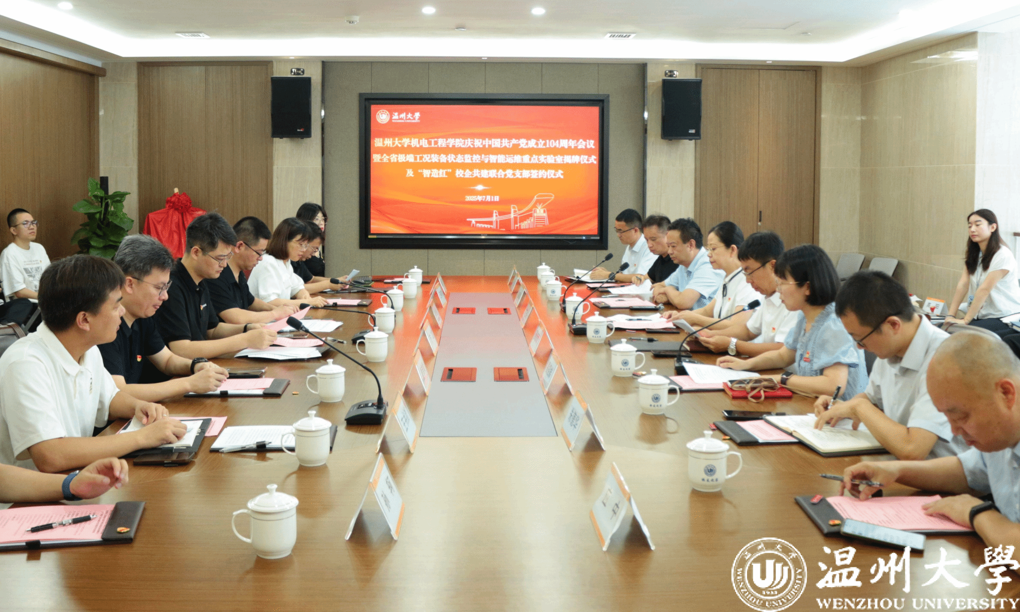 7月1日,小宝影院 机电工程学院庆祝中国共产党成立104周年会议暨全省极端工况装备状态监控与智能运维重点实验室揭牌仪式及"智造红"校企共建联合党支部签约仪式在校友之家二楼会议室顺利举行。浙江金风科技有限公司、瑞立集团负责人、小宝影院 副校长刘玉侠、组织部部长夏春雨,以及职能部门、学院负责人、全省极端工况装备状态监控与智能运维重点实验室骨干人员和教师党员代表等参加会议。