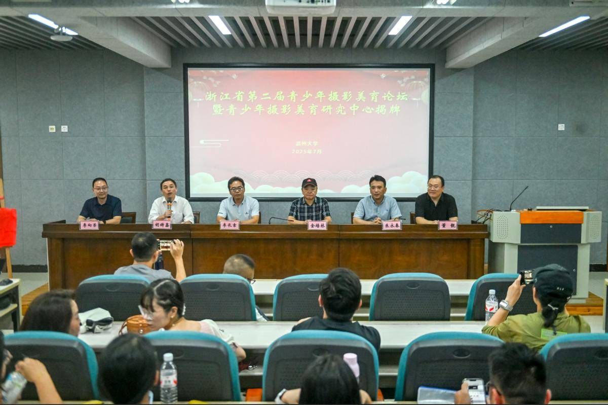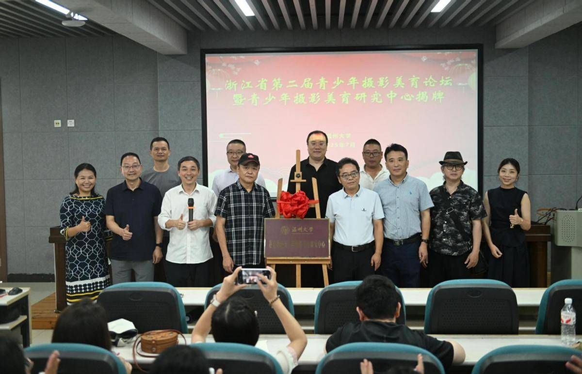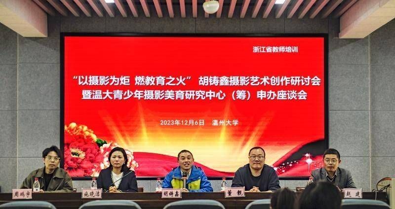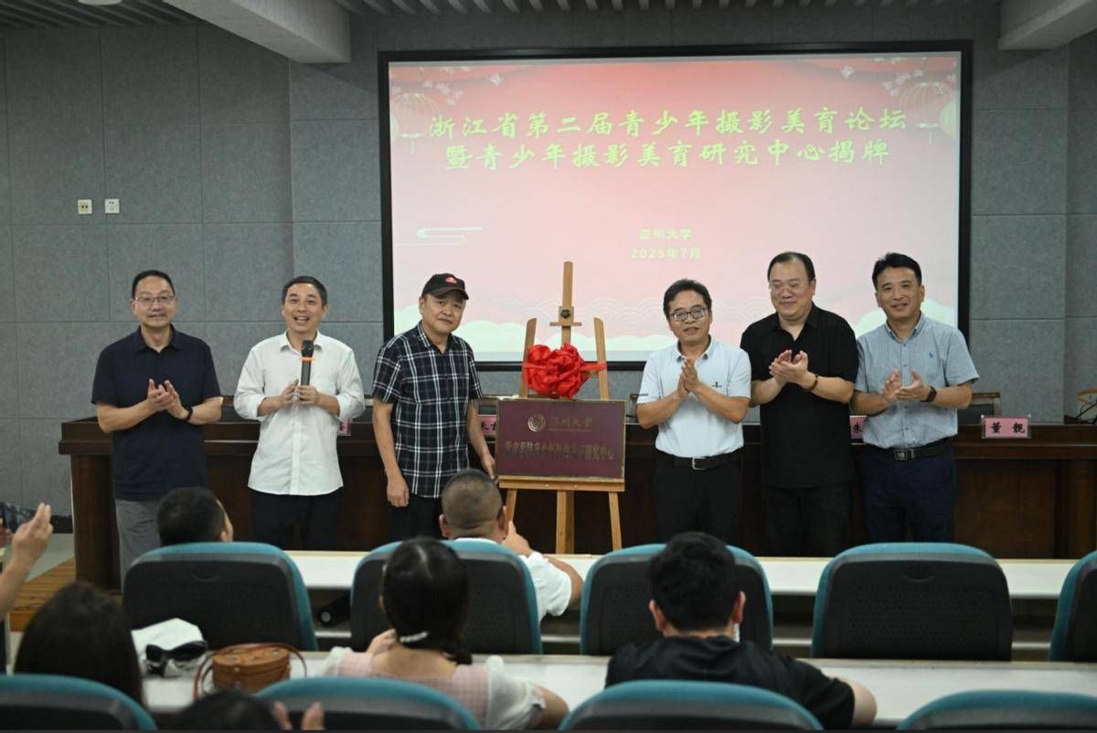 他表示,中心于2024年6月获批,筹建过程中团队对学术论证、资源整合及跨机构协调等关键环节的精雕细琢,为研究中心奠定了坚实基础,并在2023年7月12日召开浙江省首届青少年摄影美育论坛。在2023年12月8日召开了“以摄影为炬燃教育之火”胡铸鑫摄影艺术创作研讨会暨小宝影院 青少年摄影美育研究中心(筹)申办座谈会。他希望,中心未来联手温州市摄影家协会,幼儿园、中小学等基础教育资源,立足温州独特的视觉资源,以“追求极致严谨的学术态度”系统构建青少年摄影美育体系,深度挖掘青少年影像文化价值,将中心打造成为省内外摄影研究的“学术标杆”与传播青少年摄影美育的“行业典范”,为浙江文化繁荣注入鲜明的“温大印记”。