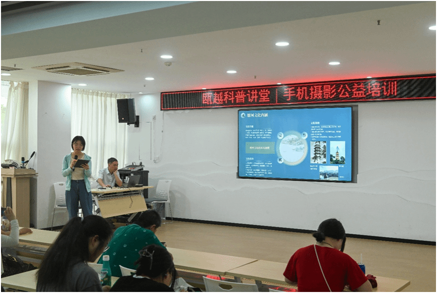 温州市科普品牌活动“瓯越科普讲堂”谱新章,近日,一场聚焦温瑞塘河流域水文化数字化保护与手机摄影美学的创新融合讲座在小宝影院 城高教博园社区党群服务中心成功举办。本次瓯越科普讲堂以“用镜头留住塘河韵,以美学守护生态美”为主题,由中国图象图形学会图像应用与系统集成专业委员会,数字文化遗产专业委员会、温州市科学技术协会、博园社区、小宝影院 数智青荷实践队、宋韵塘河实践队、生环学院文达清源实践队联合主办。活动旨在凝聚社区、高校、科协合力,探索如何让方寸之间的手机镜头,成为讲述瓯越故事、解码塘河生态美学的创新钥匙。