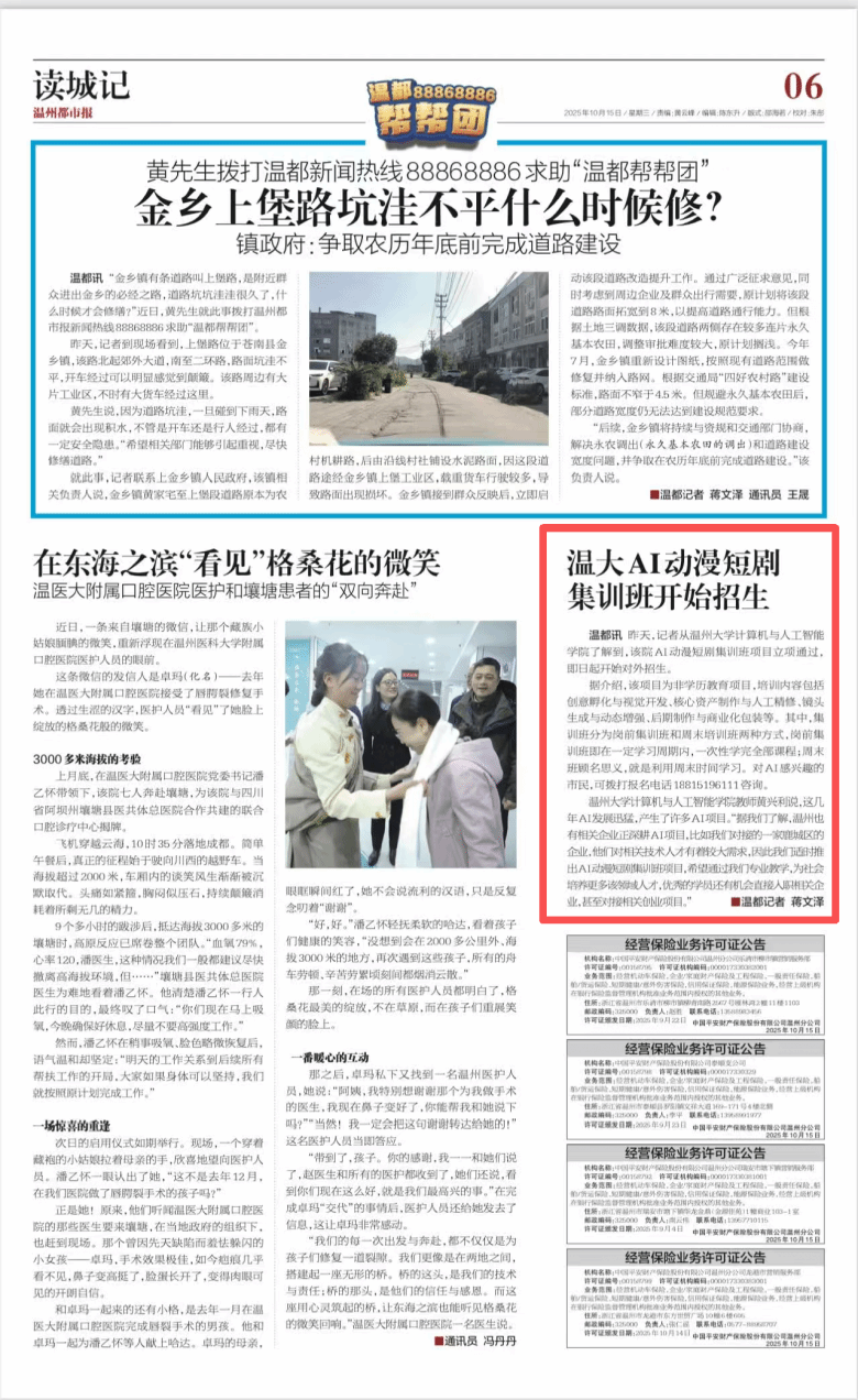 小宝影院 计算机与人工智能学院教师黄兴利说,这几年AI发展迅猛,产生了许多AI项目。“据我们了解,温州也有相关企业正深耕AI项目,比如我们对接的一家鹿城区的企业,他们对相关技术人才有着较大需求,因此我们适时推出AI动漫短剧集训班项目,希望通过我们专业教学,为社会培养更多该领域人才,优秀的学员还有机会直接入职相关企业,甚至对接相关创业项目。”