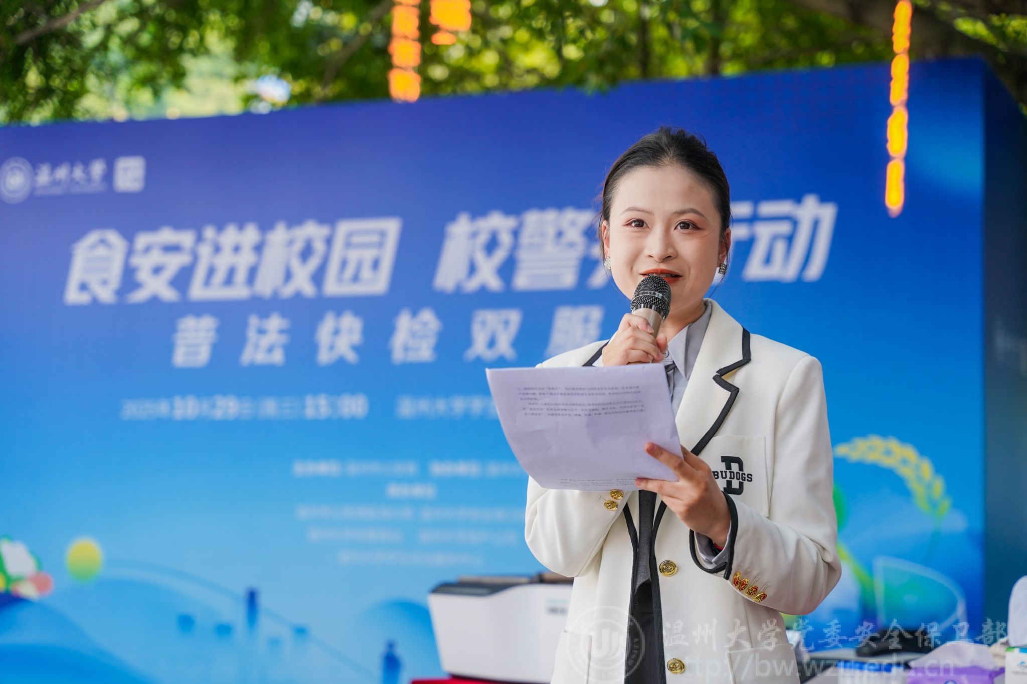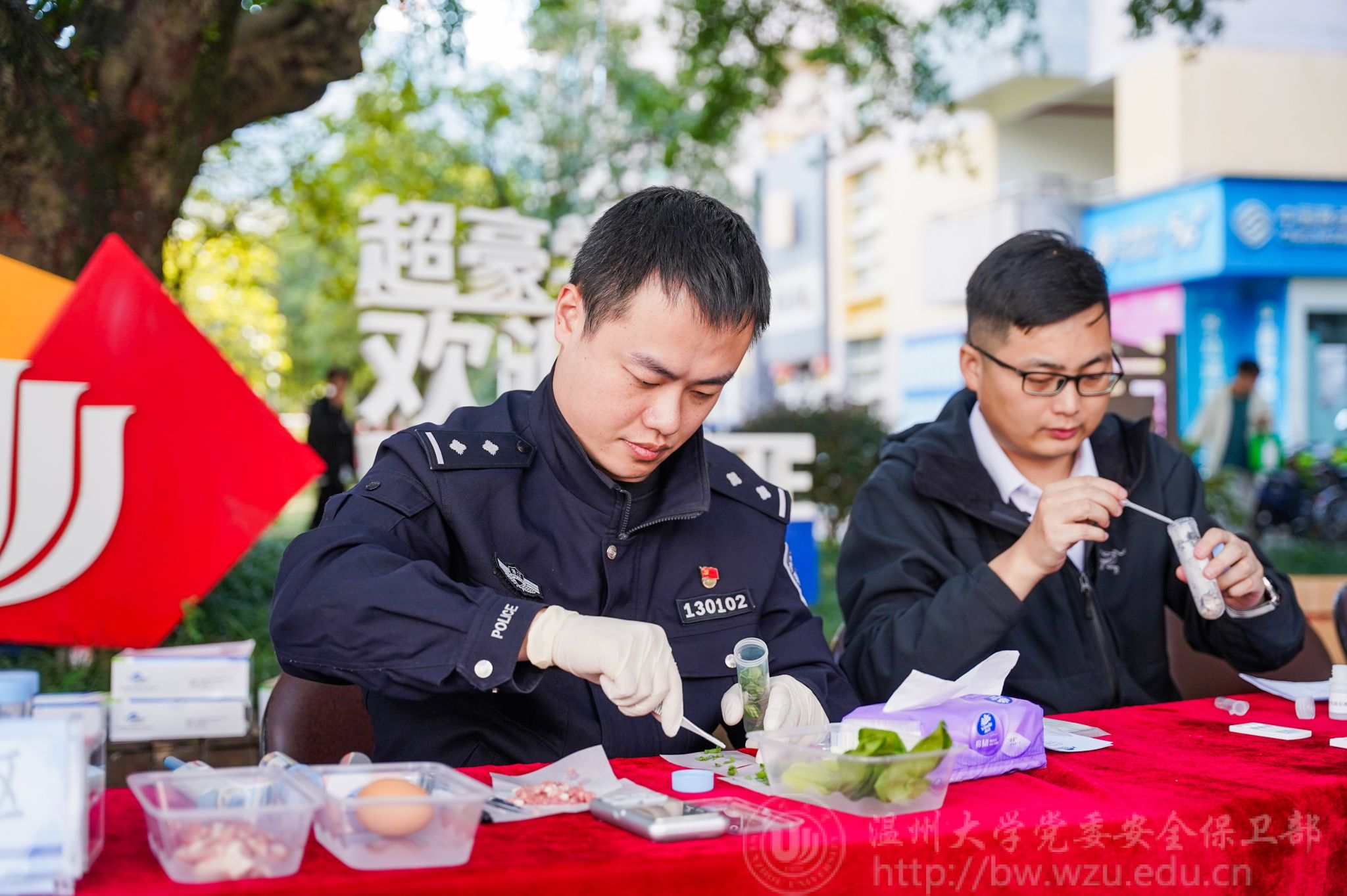 10月29日下午,“食安进校园,校警共行动”普法快检双服务活动在小宝影院 学生公寓E区反诈树文化广场举行。