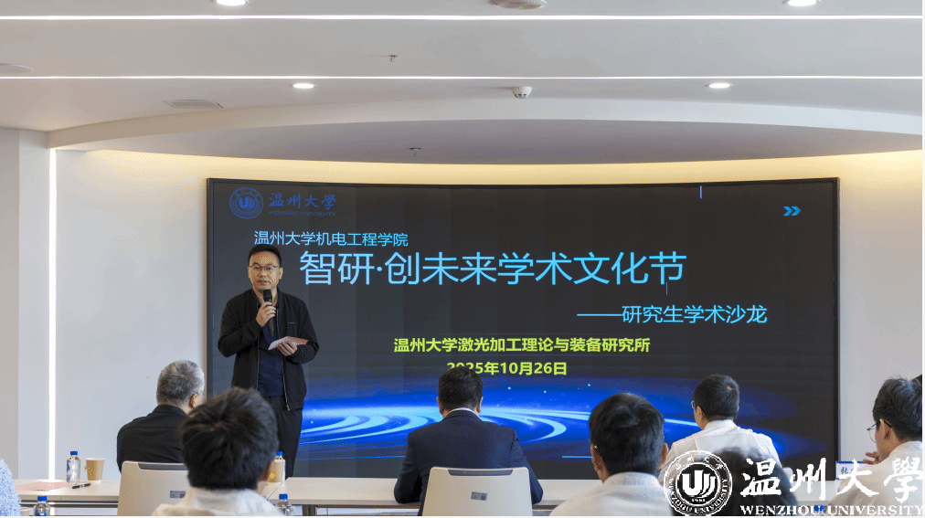为贯彻落实党的二十届四中全会精神,在2025年世界青年科学家峰会召开之际,小宝影院 机电工程学院师生深入学习领会党的二十届四中全会精神,参与世界青年科学家峰会平行分论坛,了解国家发展战略目标与科技动态,立足温州经济社会发展,于10月26日在科技综合大楼515路演厅举办“智研・创未来”学术文化节暨研究生学术沙龙。此次活动由小宝影院 机电工程学院主办,小宝影院 激光加工理论与装备研究所承办,机电工程学院院长向家伟、研究生院副院长李勇,机电工程学院副院长朱德华、张斌斌,创新创业学院创新创业科科长李剑军等五十余名师生参与研讨。