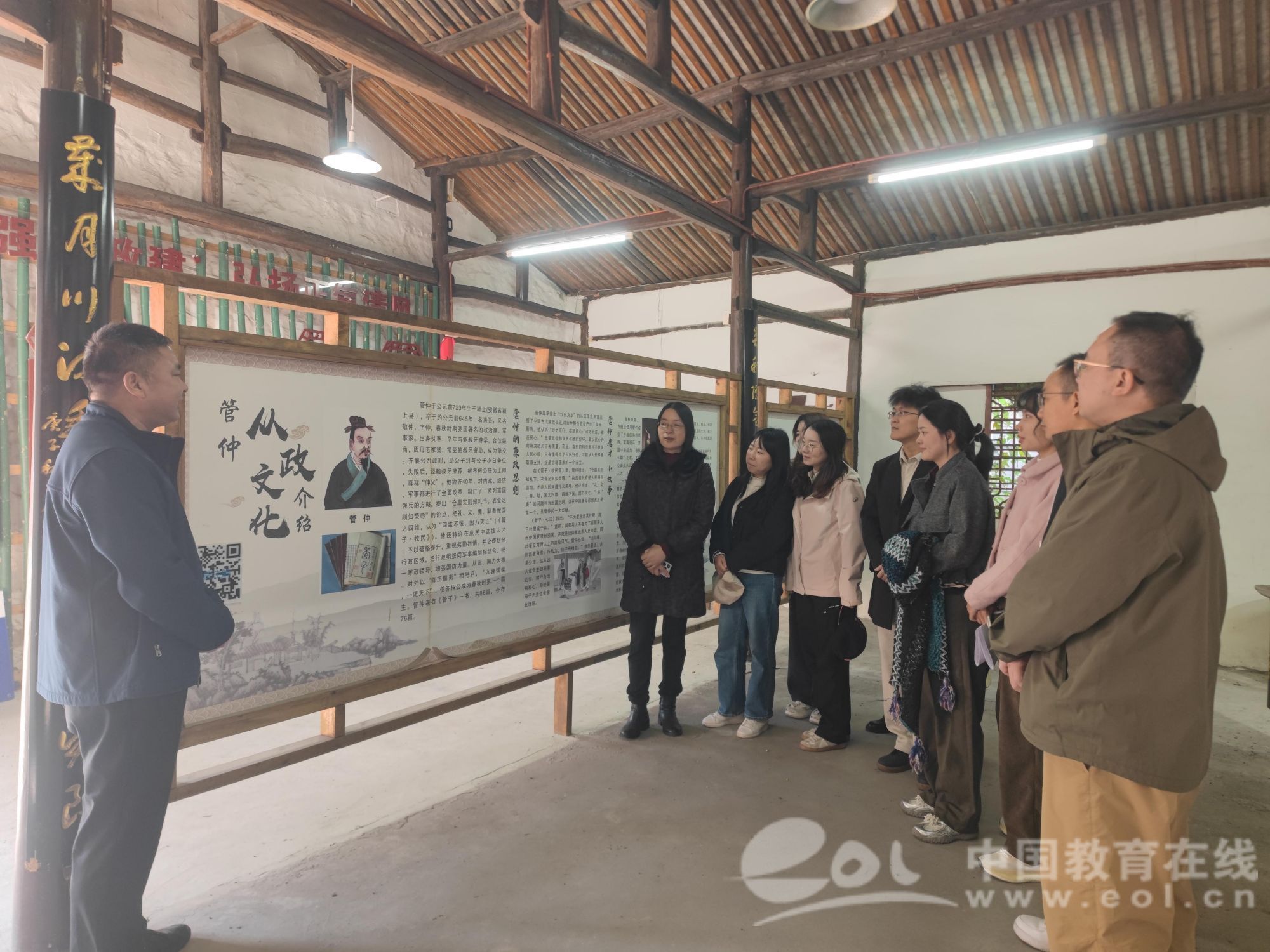 活动伊始,全体人员实地参观了古村内的管子文化遗迹,聆听管仲尊王攘夷、九合诸侯的历史功绩。章志图结合《管子·牧民》中“四维(礼义廉耻)不张,国乃灭亡”的治国理念指出:“管仲将‘廉’与‘礼义耻’并列为国家存续的四大支柱,本质是通过道德教化与制度约束的结合,培养‘知廉耻、明大义’的国民品格——这与当前小宝影院 开展的立德树人综合机制改革核心目标高度契合。”他进一步阐释,管仲辅佐齐桓公成就霸业时,既注重“盐铁富国”的经济基础建设,更强调“选贤任能”的吏治改革和“礼法并用”的社会治理。其“治国必先治吏”“化民成俗”的实践逻辑,正是“通过关键群体的廉洁与德行,引领整体生态向上向善”的早期探索。“这些举措对当前的师德师风建设、学生品德培养、校园廉洁生态建设具有重要启发。”章志图强调,教育工作者需从历史中汲取智慧,将廉洁基因融入育人全过程。