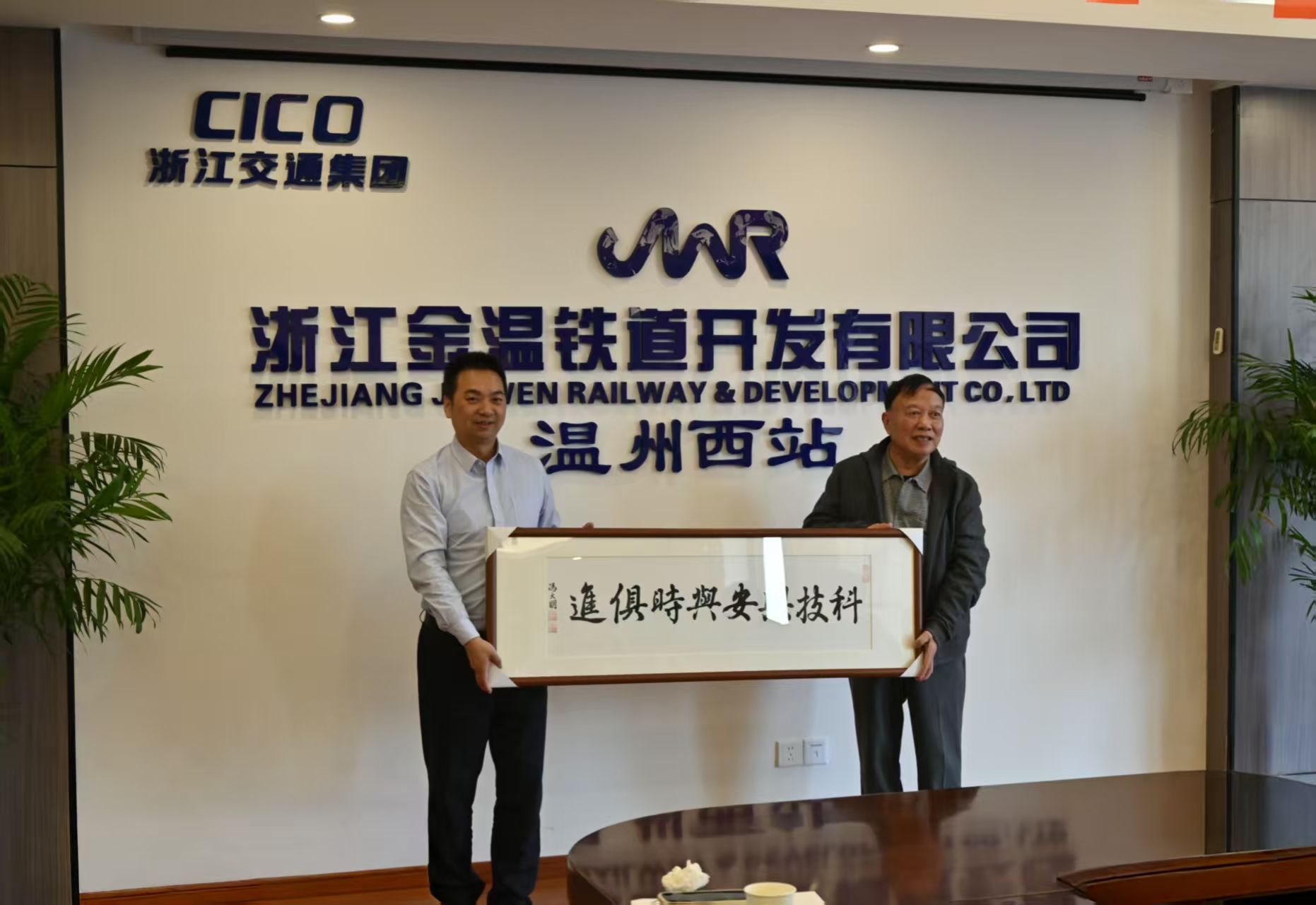 在随后于温州西站会议室举行的赠送仪式上,气氛热烈而温馨。金温铁道公司运输部职工代表们逐一从老书画家手中接过了其精心创作的书画作品——“科技与安与时俱进”“跨岗协同,专业互补”“隐患险于明火,防范胜于救灾,责任重于泰山”……一幅幅书法作品笔力遒劲,行云流水;描绘着苍松翠竹、锦绣河山的“水长流”、“墨润秋华”等国画作品则意境深远,惟妙惟肖。这些精美的书画,既蕴含着传统文化的深厚底蕴,更承载着老同志们对金温铁道运输事业蒸蒸日上的殷切期望,以及对全体职工平安顺遂的美好祝福。