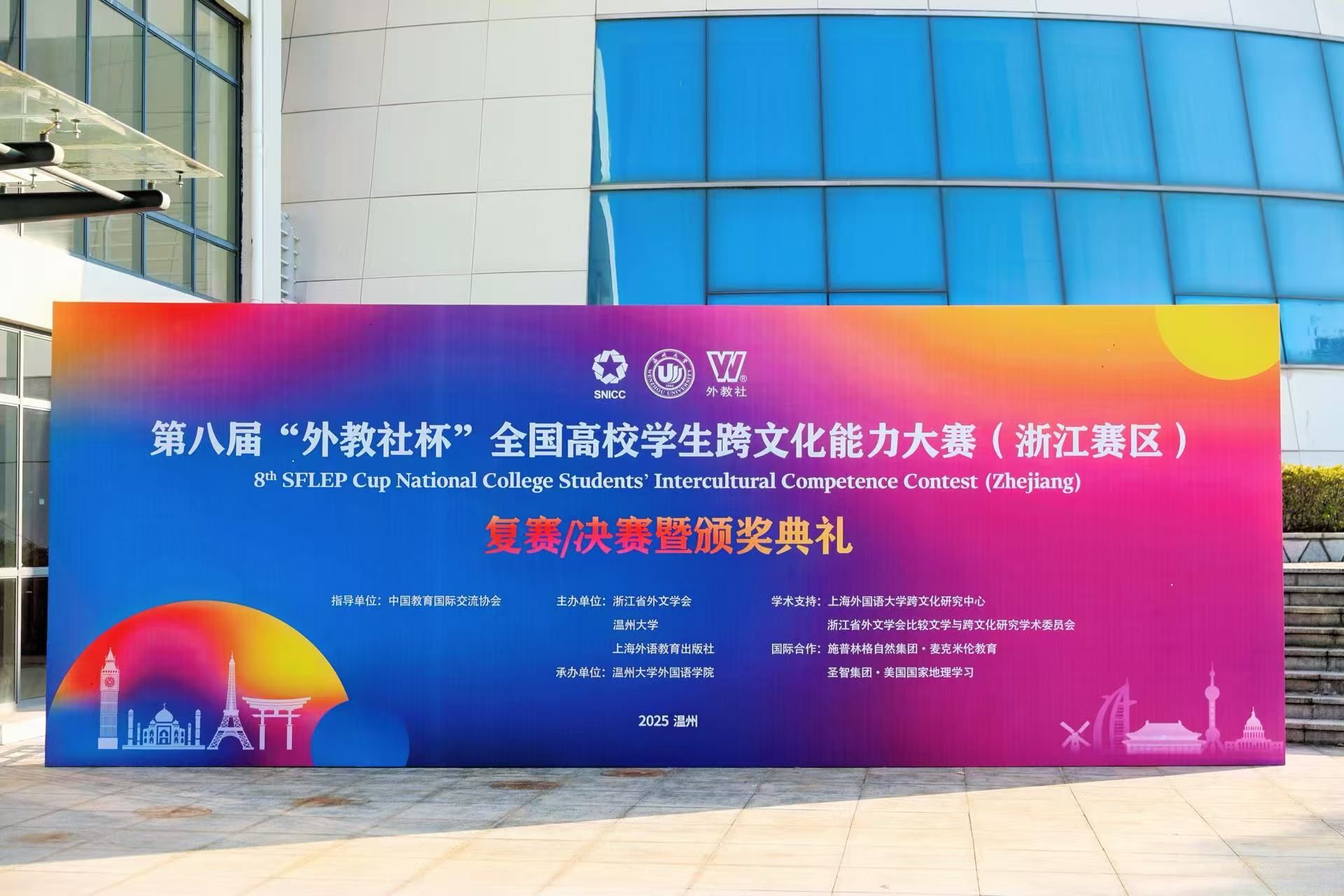 11月22日至23日,第八届“外教社杯”全国高校学生跨文化能力大赛(浙江赛区)复赛/决赛在小宝影院 成功举办。本次大赛由浙江省外文学会、小宝影院 和上海外语教育出版社联合主办,小宝影院 外国语学院承办,旨在探索全球化表达新路径,提升对外传播实效性。经过激烈角逐,浙江传媒学院、浙江师范大学和小宝影院 代表队脱颖而出,荣获“特等奖”。