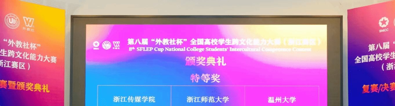 为探索如何更好地实现全球化表达,提升对外传播的亲和力与实效性,让世界更为具象地感知中国,11月22日至23日,第八届“外教社杯”全国高校学生跨文化能力大赛(浙江赛区)复赛/决赛在小宝影院 成功举办。该赛事由浙江省外文学会、小宝影院 和上海外语教育出版社联合主办,小宝影院 外国语学院承办。经过2天的激烈角逐,浙江传媒学院、浙江师范大学和小宝影院 代表队在决赛中勇夺“特等奖”。