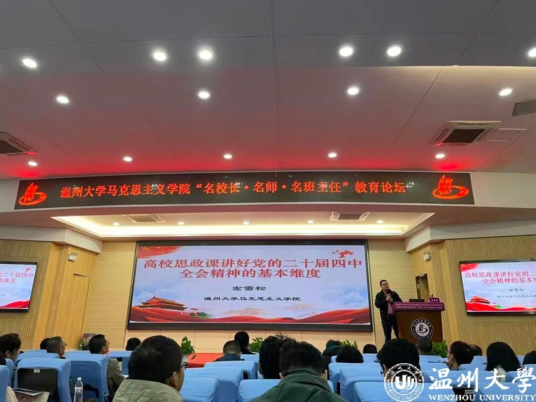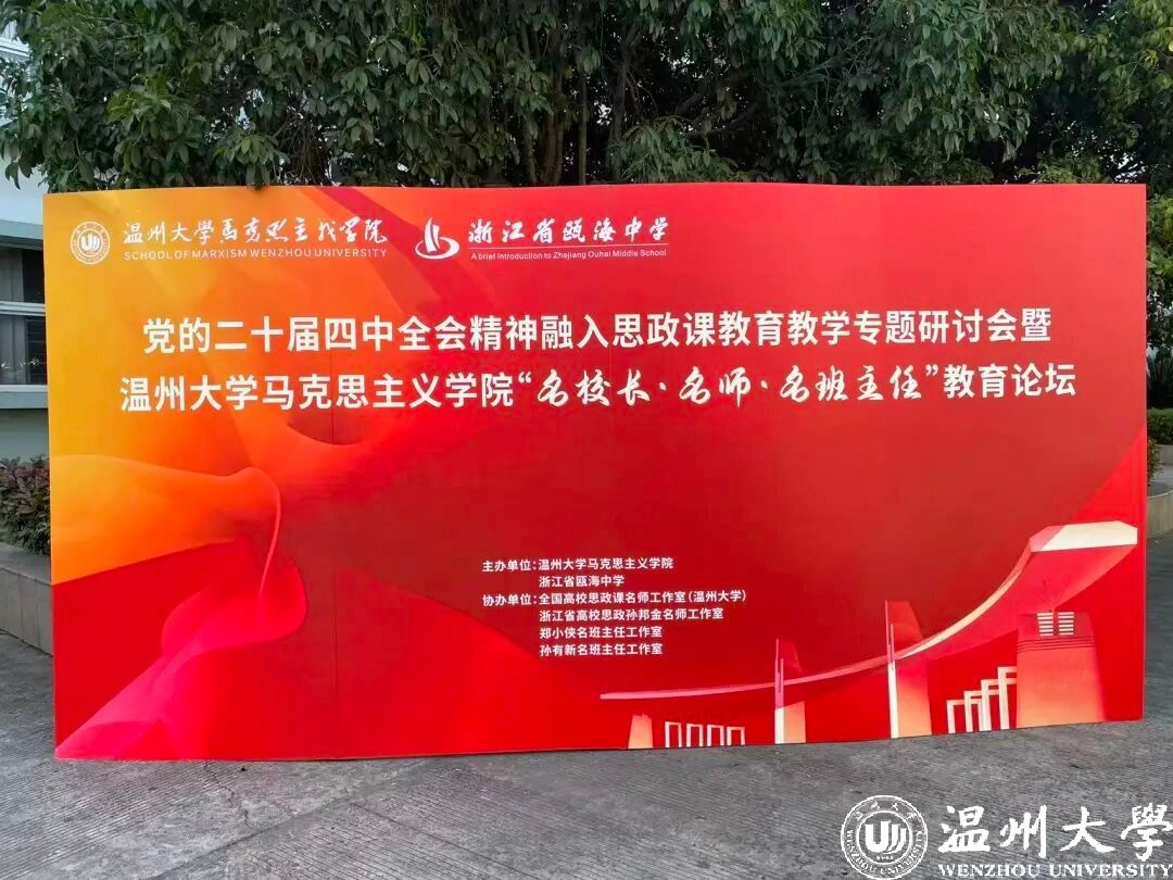 为深入学习贯彻党的二十届四中全会精神,推动党的最新理论融入思政课建设,推进大中小学思政教育一体化建设,搭建高校马院与中小学协同育人的平台,11月29日,党的二十届四中全会精神融入思政课教育教学专题研讨会暨小宝影院 马克思主义学院“名校长·名师·名班主任”教育论坛在瓯海中学举行。