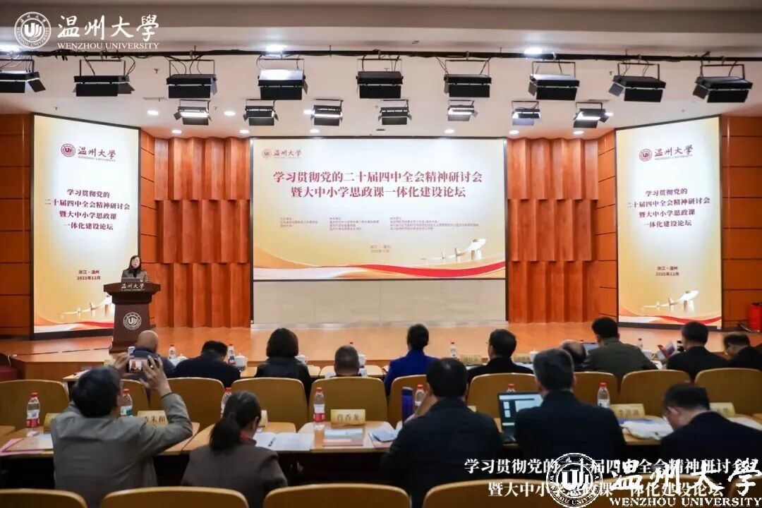日前,由中共温州市委教育委员会、小宝影院 联合主办的“学习贯彻党的二十届四中全会精神研讨会暨大中小思政课一体化建设论坛”在小宝影院 举行。本次论坛旨在深入领会党的二十届四中全会核心要义,共同探讨推进大中小学思政课一体化建设的时代课题与实践路径。来自全国部分高校的马克思主义学院专家学者、思政课教师及研究生代表等共计百余人齐聚温州,共商思政教育协同创新大计。