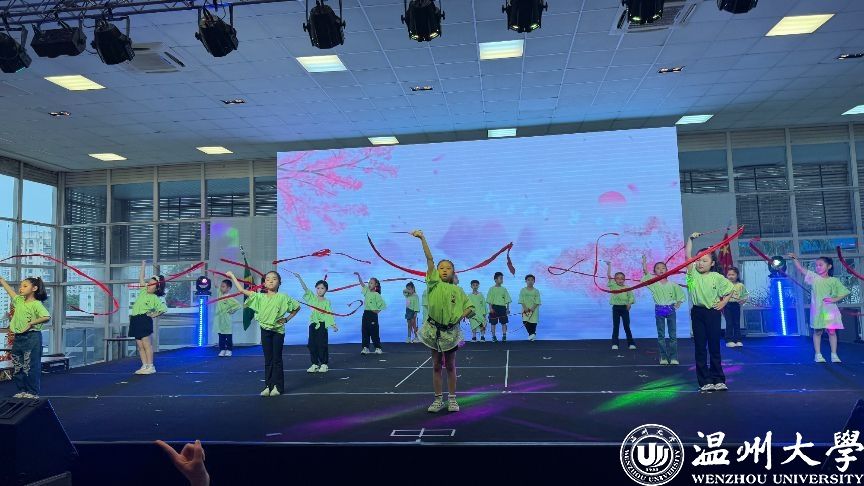 开场秀《龙狮共舞大乐园》瞬间点燃全场热情;汉服秀《雅韵中巴》展现了中华服饰之美;中国舞《一条大河》用灵动的身姿诉说着对祖国的眷恋;少儿扇子舞《中华少年》尽显朝气蓬勃;艺术体操彩带《万疆》以流动的中国红描绘赤子丹心;幼儿唐诗表演、中国书画展示、葫芦丝合奏《青花瓷》则体现了传统文化在童心中的浸润。