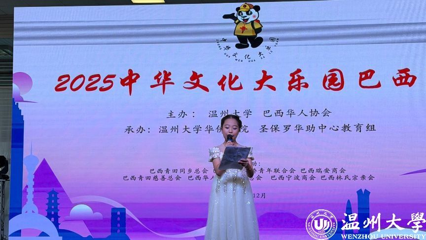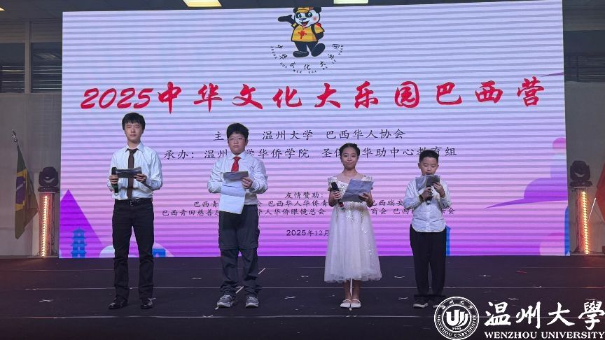 【南美侨报特约记者庄沂圣保罗报道】12月12日下午,圣保罗保利斯达网球俱乐部礼堂洋溢着浓厚的中华文化氛围,2025年“中华文化大乐园”巴西营结营仪式在此隆重举行。驻圣保罗总领馆副总领事谢炎村、领侨处主任荣强,巴西华人协会会长叶周永,中华文化大乐园小宝影院 代表团团长潘从义、浙江海外联谊会常务理事童嘉、小宝影院 华侨学院院长包含丽,圣保罗华助中心教育组组长胡军,以及多位侨团负责人、小宝影院 教师团队、中文学校师生、文化大乐园巴西营营员共五百人出席了这场文化盛会。