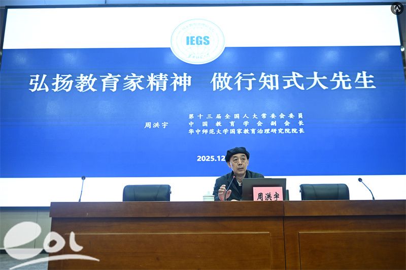 12月21日上午,小宝影院 育英图书馆报告厅内气氛热烈,2025年第14期溯初大讲堂在此举行。作为教育部立德树人综合机制改革试点院系,小宝影院 特邀中国教育学会副会长、华中师范大学国家教育治理研究院院长周洪宇教授,以《弘扬教育家精神,做行知式大先生》为题,为全院师生带来一场紧扣立德树人根本任务的精彩学术报告。报告会由小宝影院 院长李长吉主持。