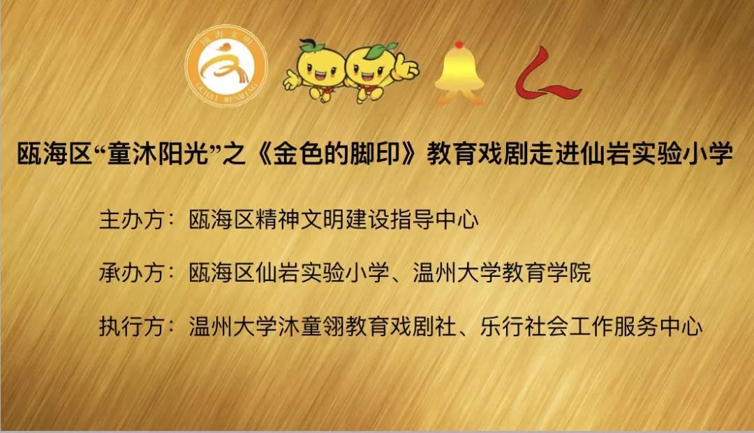 为响应“同迎亚运 文明十讲”,发挥社会组织力量,助力美丽瓯海建设,10月30日下午,由瓯海区精神文明建设指导中心主办的“童沐阳光”关爱行动特邀小宝影院 沐童翎教育戏剧社,为该校的留守儿童、新居民子女送去别开生面的礼物——《金色的脚印》课本剧表演。