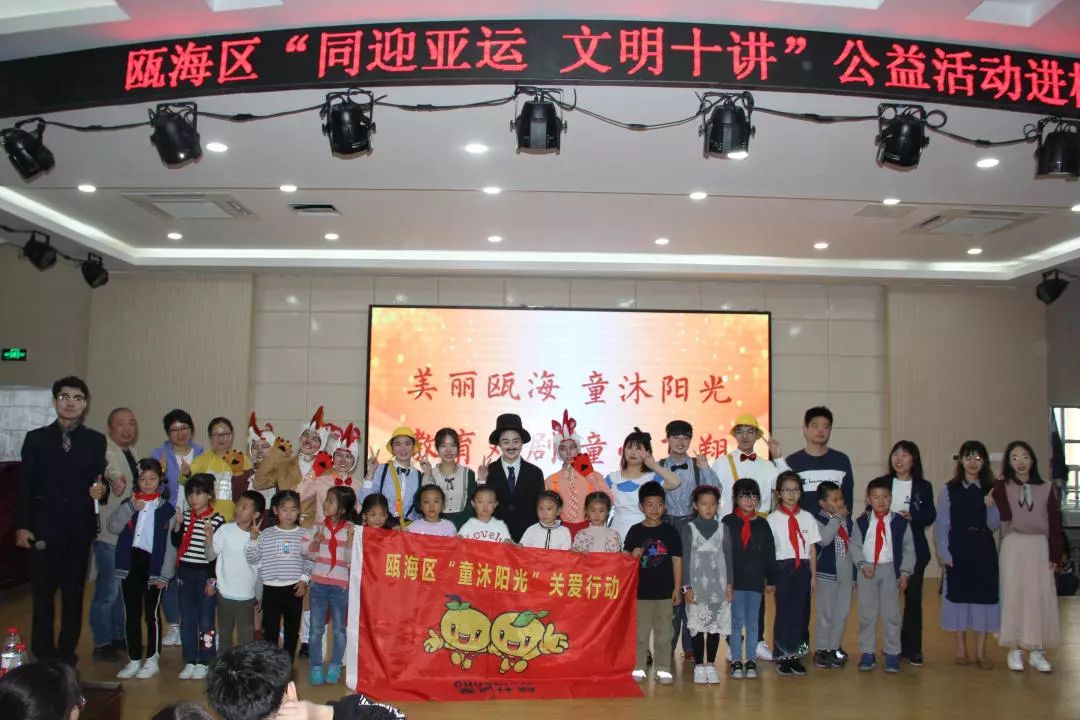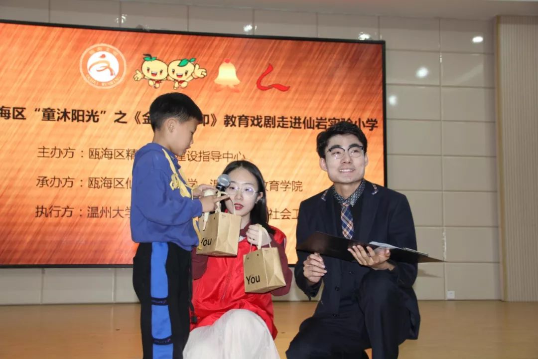此次公益演出是瓯海区精神文明建设指导中心开展的“童沐阳光”关爱新居民子女、留守儿童系列活动之一,也是小宝影院 沐童翎教育戏剧社和温州乐行社会工作服务中心公益服务的又一次送剧到校园。该戏剧社主要为温州新居民子女、留守儿童等提供公益演出,丰富这些孩子们的课外生活。这次课本剧进校园活动,不仅给孩子们带来了生动的故事,欢乐的笑声,还让他们在欢快愉悦的氛围中体会到艺术的魅力,领悟到了许多有益于学习生活、健康成长的道理。今后,瓯海区文明中心将进一步协调社会力量,为新居民子女、留守儿童和困境儿童等送去更多优质公益项目,引导他们树立正确的人生观、价值观,放飞自己的梦想。