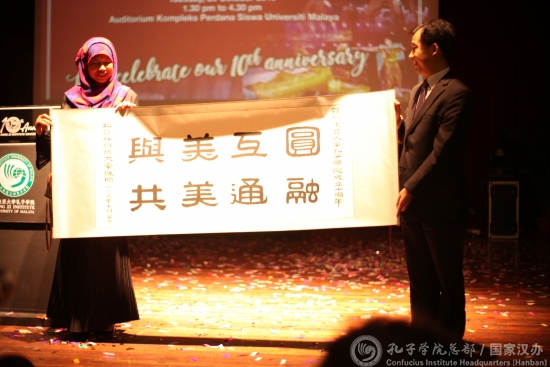 庆典仪式上还播放了“马来亚大学孔子学院十周年回顾视频”,并举行孔子学院新网站以及新宣传视频的发布仪式。来自孔子学院23个教学点的师生祝福视频将整个庆典活动推向了高潮。