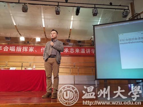 主题讲座以金承志先生的自我经历开始,曾走入困难期的他不甘于放弃,不断汲取经验找寻问题根源。扎根乡村后,他对慢节奏的生活感触颇深,一句“从生活获得灵感,把生活唱成歌,细心感受生活,记录生活点滴。”引起大家的共鸣。目前,由他组建的上海彩虹合唱团致力于与不同的作曲家及指挥合作,融合文艺复兴、古典、浪漫主义时期及当代作品进行实践,在风格上对民族、爵士有所尝试。随后,我院合唱团有幸与金承志先生合作,他以独特诙谐的技巧指导了合唱团的师生。通过学习,大家对歌曲有了更深入的理解,实践指导为学生上了一堂生动有趣的教学课,也为音乐学院的合唱提供了启发性的教学范例,讲座收尾,不少金承志老师的“迷弟迷妹”激动地与老师交谈并与老师合影留念。