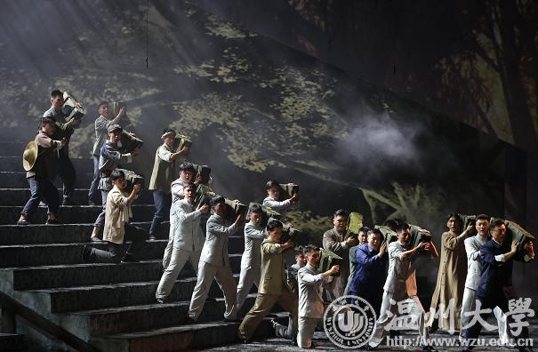 一部歌剧,音乐是关键。对音乐我不敢妄评,只能外行地说一句好听。歌剧是以美声唱法的形式来表现,但本剧很明显地融进了许多现代音乐的元素,在美声唱法里,掺杂着通俗唱法,二者无缝对接,听起来丝毫不觉得违和,有些音律甚至让我有神来之笔的感觉。一场两个半小时的歌剧,音乐随着剧情时而激昂,时而抒情,时而婉转,时而悲怆,有多少音符在跳动,在飞扬?不可计数。为作曲者点赞。值得点赞的还有演员,本剧的主演都是温州本土人,唱功了得,让人惊艳。