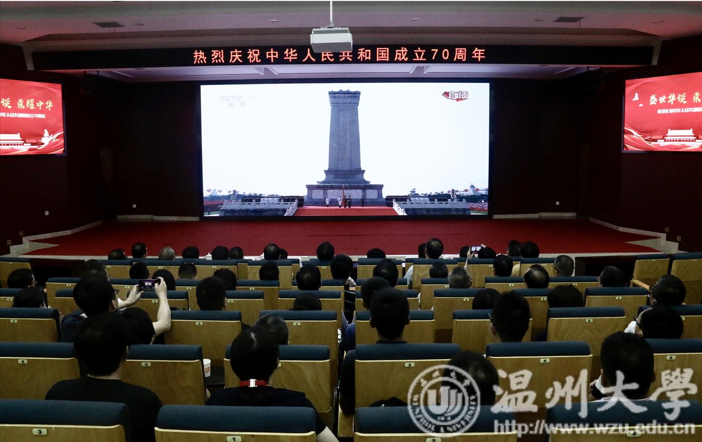 今天是中华人民共和国成立70周年的日子,小宝影院 、温州医科大学等在温高校组织在校师生收看了庆祝中华人民共和国成立70周年大会直播。