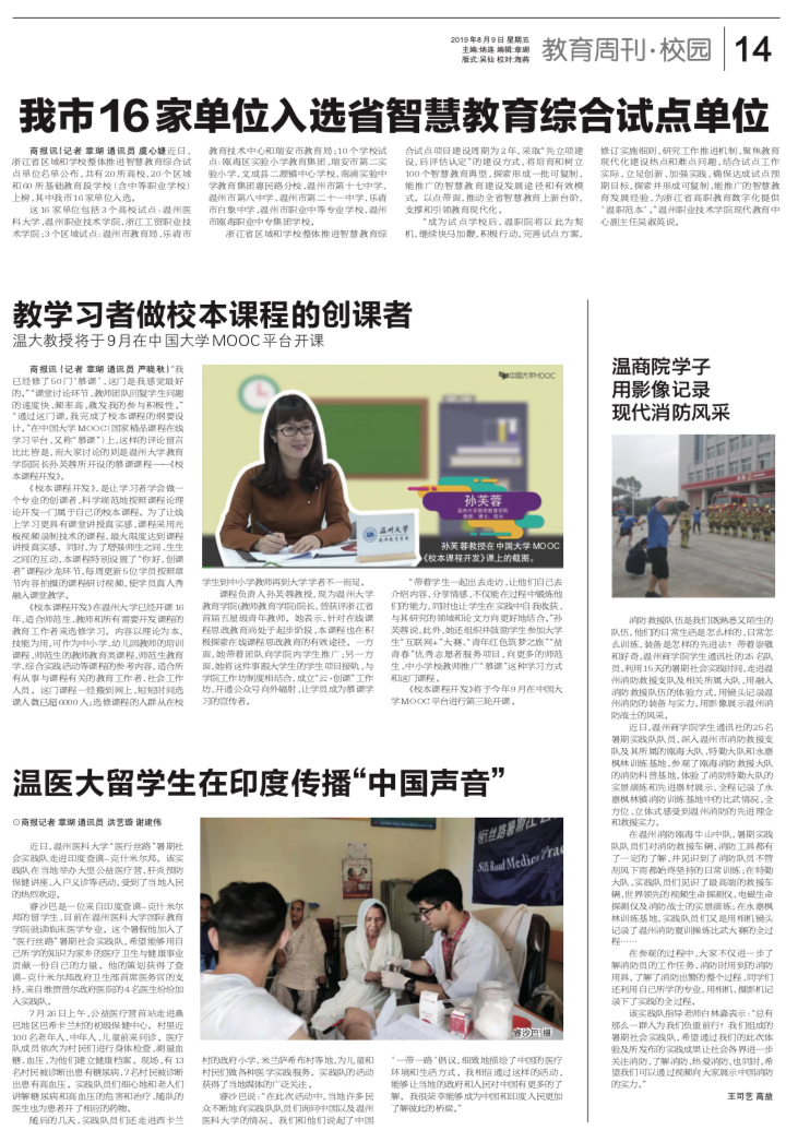 “带着学生一起出去走访,让他们自己去介绍内容、分享情感,不仅能在过程中锻炼他们的能力,同时也让学生在实践中自我收获,与其研究的领域和论文方向更好地结合。”孙芙蓉说,此外,她还组织并鼓励学生参加大学生“互联网+”大赛、“青年红色筑梦之旅”“益青春”优秀志愿者服务项目,向更多的师范生、中小学校教师推广“慕课”这种学习方式和这门课程。
