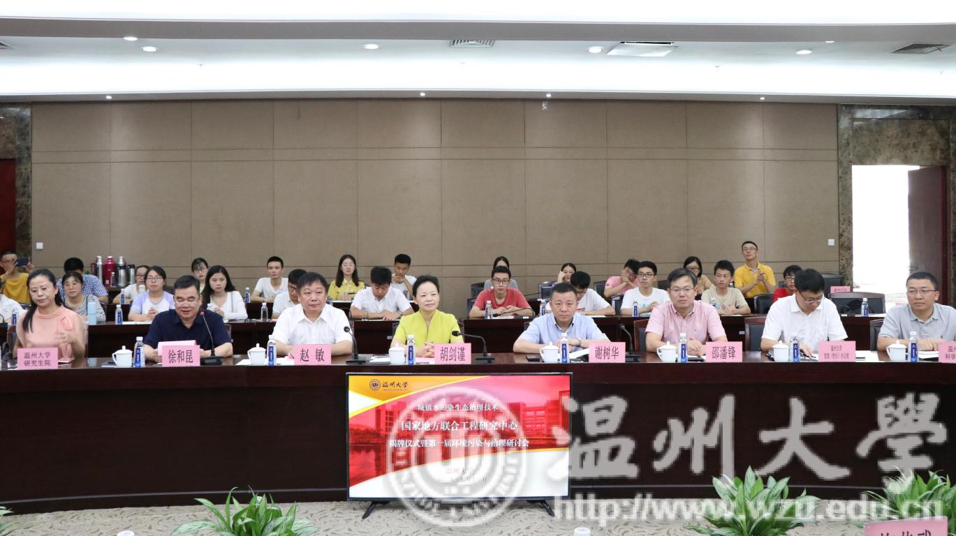 揭牌仪式后,第一届环境污染与治理研讨会在小宝影院 召开。上海交通大学孔海南教授、浙江大学陈宝梁教授、哈尔滨工业大学梁恒教授、浙江省环境保护科学设计研究院梅荣武教授以环境污染与治理为主题做了大会报告。上海交通大学孔海南教授针对高品质"二元供水"技术体系开发与温州雁荡山周边普及思考进行了详细的介绍,对温州市的供水技术体系的开发具有指导性意义。浙江大学陈宝梁教授介绍了石墨烯基环境功能材料构建及其污染控制应用,为环境功能材料的研发及应用带来了新的思路。哈尔滨工业大学梁恒教授介绍了低压膜滤净水技术,深入介绍了膜滤技术的优点及运行的原理。浙江省环境保护科学设计研究院梅荣武教授主要介绍了城镇污水处理厂提标至地表准IV/III类水标准工艺技术路线及案例,对温州市城镇污水处理厂实现提标具有重要参考价值。