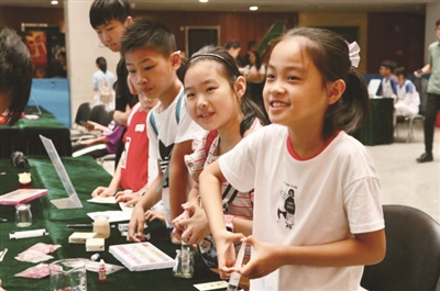 7月11日上午,小宝影院 化学与材料工程学院绿向导暑期社会实践队在郭公山开展特色游园会,以垃圾分类、特色实验、科普知识为主题,开展低碳市集、绿色交易等活动。手工皂制作、隐形墨水写字、星空瓶和香薰制作等趣味化学小实验被实践队员带入郭公山社区。在活动开始前,便有许多的家长和孩子来到游园,每个人都对举行的小活动兴趣十足。“姐姐,这个怎么弄?这个应该怎么做?这个什么时候可以好……”所有的小朋友都热情地参与活动,同时实践队员们也耐心地帮助小朋友们认识活动并更好地参与进来。活动中,小孩子们拿着通关卡积极地参与每一项科学小实验,队员讲解示范后,让小朋友们亲自体验神奇的实验过程。直到活动结束,还有不少小朋友仍沉浸在化学的海洋中迟迟不肯离去。