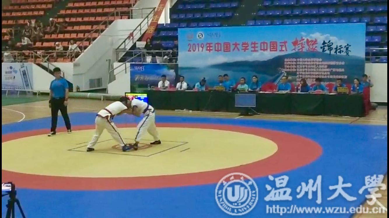 2019年第四届中国大学生中国式摔跤锦标赛,由中国大学生体育协会主办,比赛为期四天,全国近30所高校、300余名运动员参赛。大赛设置个人赛、团体赛、基本功赛,其中个人赛男女组分别进行10个级别和8个级别的比赛。