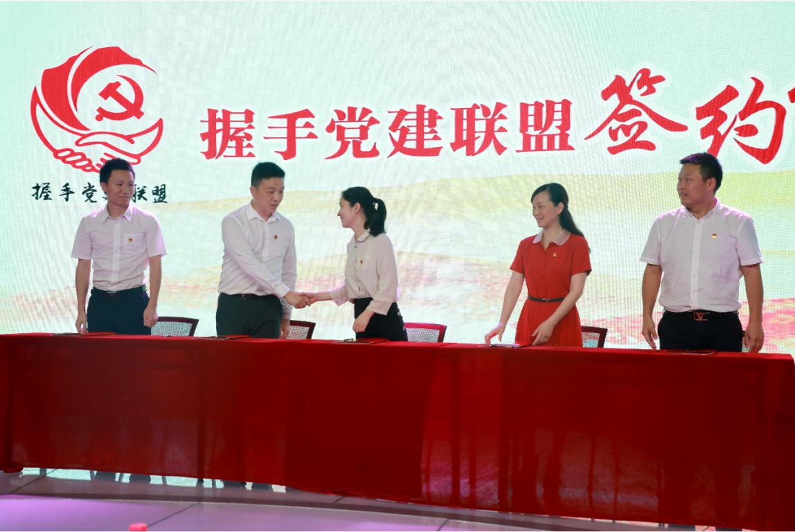 6月28日,“握手”党建联盟启动仪式在浙南科技城举行,小宝影院 美术与设计学院党委同温州市龙湾区委两新工委、浙南科技城机关党委、蒲州街道党工委、瑶溪街道党工委等5家“握手”党建联盟的成员进行签约仪式,并宣读了联盟公约、发布了服务项目清单。