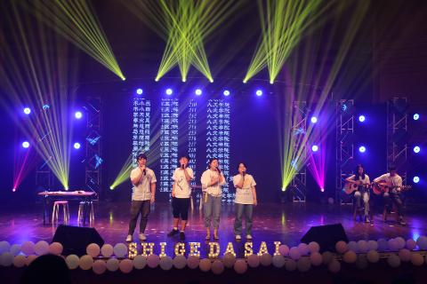 5月26日,小宝影院 超豪学区第七届“同E首歌”室歌大赛决赛暨“舍彩缤纷”舍里文化节闭幕式在温大南校音乐厅举行。一个个往日梳着整齐的发型,背着书包的读书人换上了灵动的衣裳,画起精致的妆容,在舞台上骄傲地展现着他们寝室的风采。