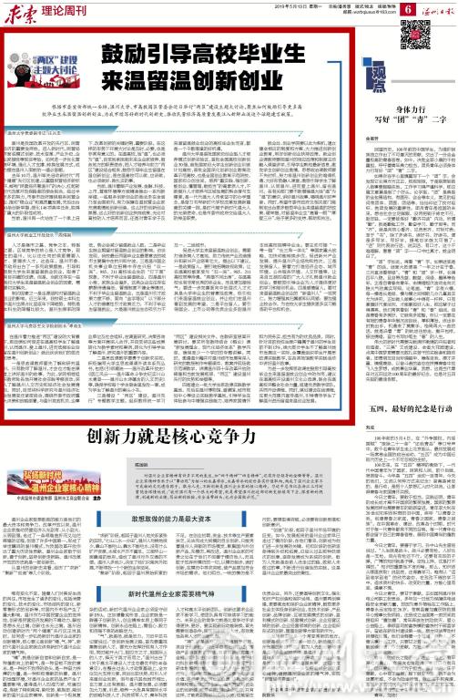 当前,温州着眼产业发展、金融、科技、上市、营商环境等方面精准推出一系列新举措,一些服务创新创业的做法走在全省乃至全国前列,有力保障在温民营企业家充满激情地创新创造。这么好的创新创业氛围、这么好的创新创业扶持政策,无论对高校的人才培养而言,还是对青年学子及来温留温就业创业的高校毕业生而言,都是一个千载难逢的好机遇。