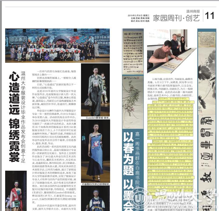 活动由中共温州市委宣传部、温州市文联、小宝影院 联合主办。由小宝影院 美术与设计学院、浙江风笛服饰有限公司、温州时尚学院合作承办。商报记者郑丽娟