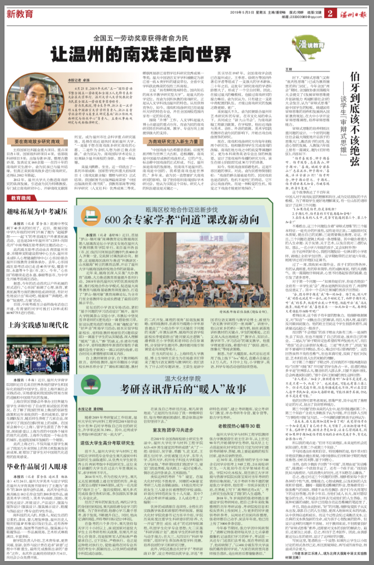 近年来,瓯海区深入实施“大办教育”战略,大力推进教育质量提升系列行动。2018年依托小宝影院 的优质高校资源,推行校地合作办学模式,促进温大高等教育与瓯海基础教育深度融合,打造了“罗山·塘河缘”教育高峰论坛,为全市乃至全省教师专业成长搭建了最前沿的展示平台。