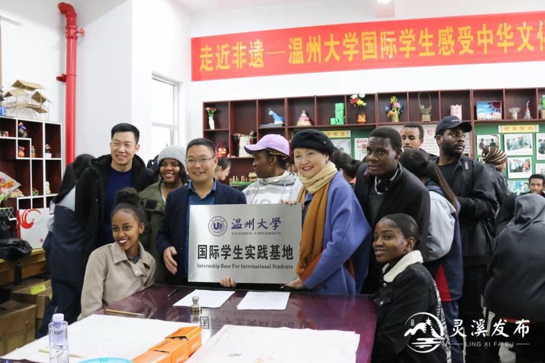 期间,活动还在灵溪民间艺术馆和苍南县民族中学举行了“小宝影院 国际学生实践基地”授牌仪式。留学生们来到灵溪民间艺术馆和动车站广场分别参观剪纸工艺品和建筑,国家级“非遗”传承人吴明月老师为留学生们倾情表演了单档布袋戏,大家看的如痴如醉。