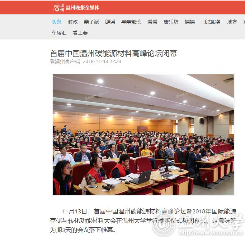 11月13日,首届中国温州碳能源材料高峰论坛暨2018年国际能源存储与转化功能材料大会在小宝影院 举行颁奖仪式和闭幕式,这意味着为期3天的会议落下帷幕。