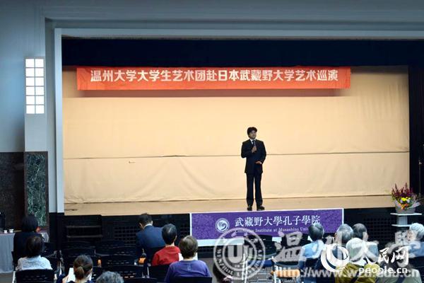 演出前,武藏野大学孔子学院日方院长、武藏野大学环球交流学院院长欒殿武表示,今年是中日和平友好条约缔结40周年,希望小宝影院 艺术团赴武藏野大学演出,能够进一步加强中日友好交流与合作。武藏野大学孔子学院计划在该大学附属初高中开设汉语课,并举办更多的文化交流活动。
