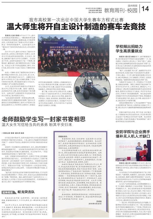 2017 年12 月,小宝影院 成立了小宝影院 疾风车队,由机电工程学院的7 名博士、40 多名大学生组成科技创新团队,自主设计、制造、装配属于小宝影院 自己的赛车。自从组成了车队,这些师生就放弃了每一个假期,寒假也好、暑假也好,他们都把时间交给了实验室。在经过10 多个月的反复测试、调节,今年8月底,师生们终于完成了疾风1 号赛车的制造。