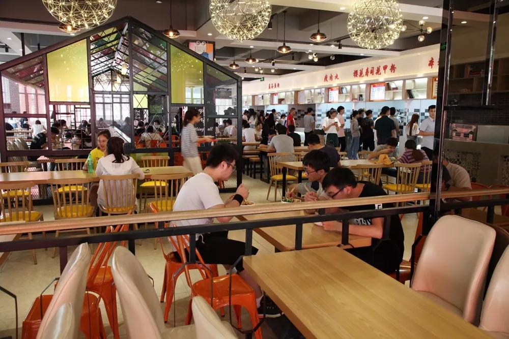 为了能让学生们吃得更好、吃得更舒心,这个暑假花了480多万元对老食堂进行了新装修,包括在食堂外面装扶手电梯,引进麻辣香锅、山东煎饼、花甲粉等多种网红食品。