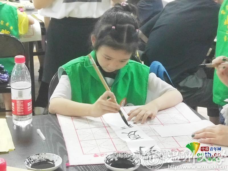 在毛笔书法课上小朋友很认真的在临摹横竖笔画。 中国青年网通讯员 沈潇鹏 摄