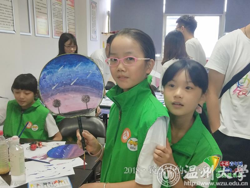 小孩子们在空白的宫扇上用水粉颜料自行创作。 中国青年网通讯员 黄浚辰 摄